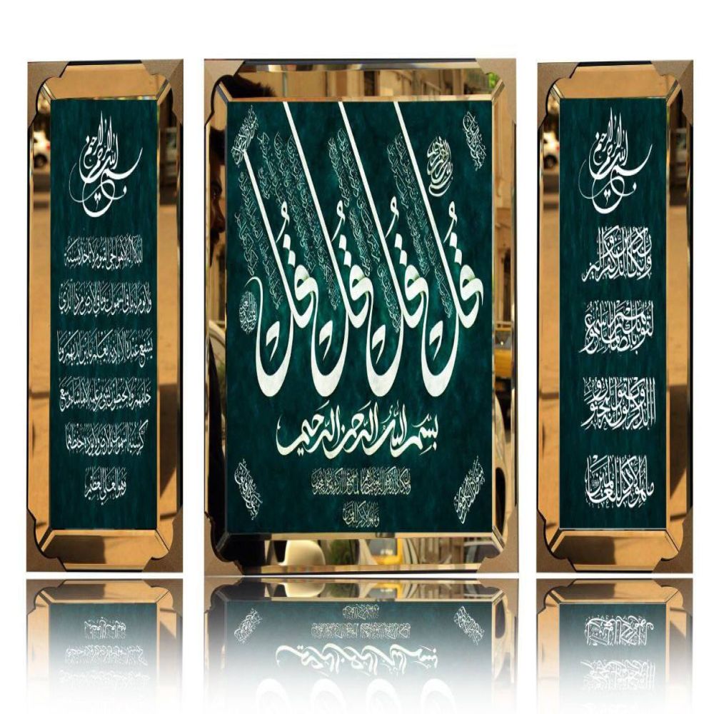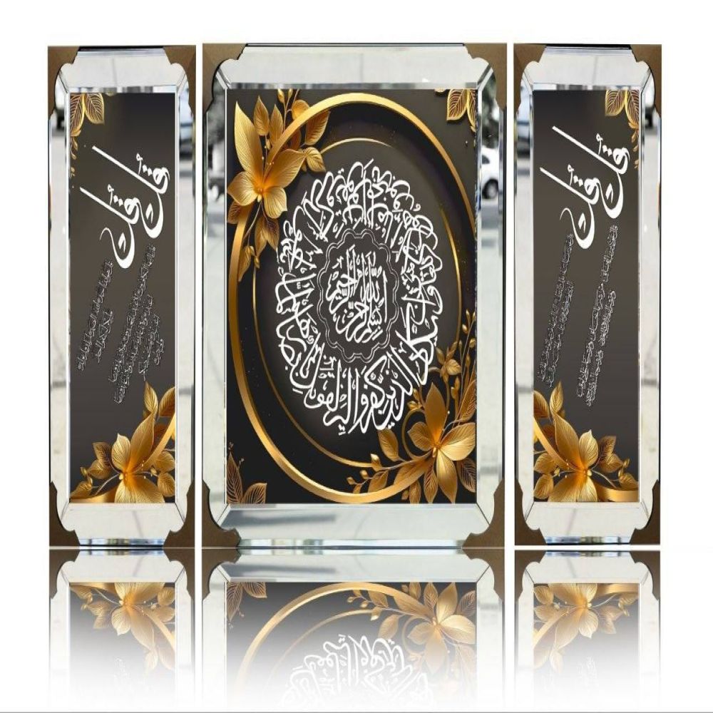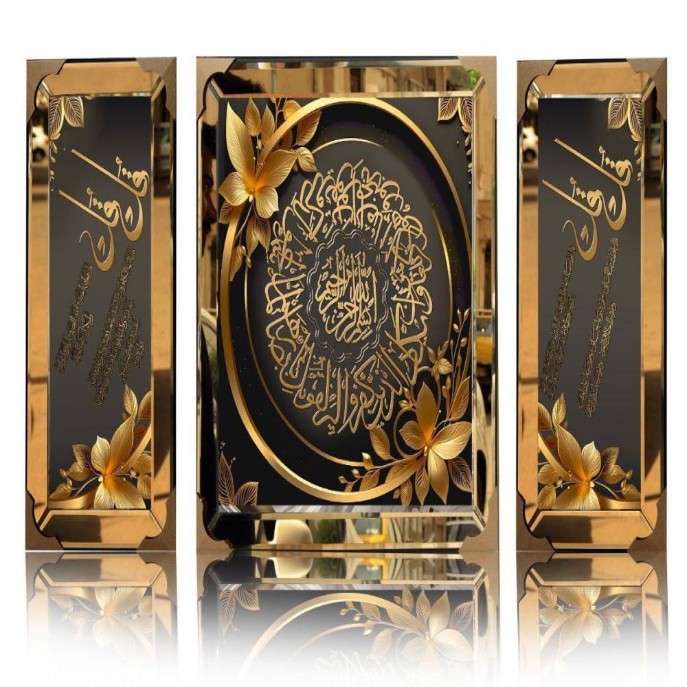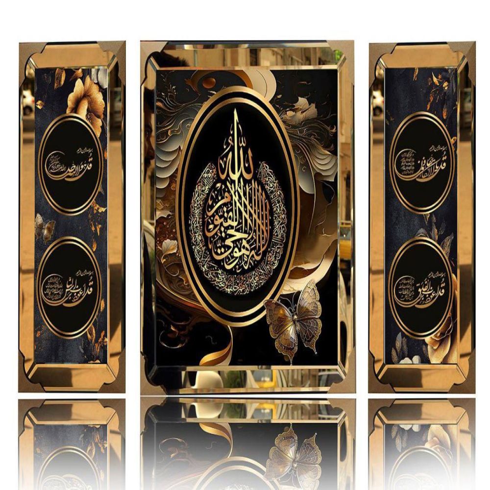"تابلو آیینه ای آیت الکرسی وان یکاد و 4 قل ، سایز بزرگ"